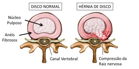 Hérnia de disco é quando o núcleo pulposo extravasa pelo anel fibroso.